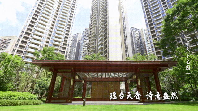 瑶台天香”,借景西安兴庆宫内的沉香亭,名称出自李白著名古诗《清平调》:“若非群玉山头见,会向瑶台月下逢”,亭前一方沃青草坪,为小朋友与宠物打造一片尽情玩耍的天地,踢球、嬉戏、追逐,闲情与欢乐在此环环相扣。